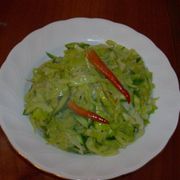 圆白菜、黄瓜、泡椒、花椒、油、橄榄油、海鲜酱油、盐、米醋。