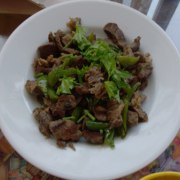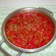 牛肉馅、红辣椒、绿色辣椒、洋葱、葵花籽油、酱油、番茄酱、盐、八角。