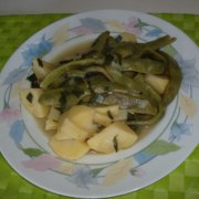 豆角、土豆、小葱、鲜姜、葵花籽油、盐、八角、水。