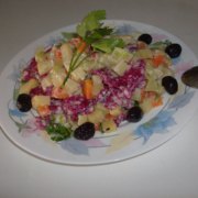 马铃薯、胡萝卜、西葫芦、洋葱、香菜、橄榄、橄榄油、沙拉酱、盐。