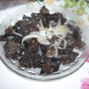 泡发木耳、洋葱、豆油、精盐、花椒粉。