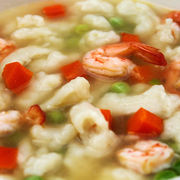 虾仁、面粉、胡萝卜、豌豆、味极鲜生抽、橄榄油、盐。