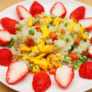 米饭、胡萝卜、豌豆、火腿肠、青瓜、鸡蛋、十三香粉、盐、鸡精。