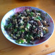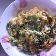 青椒、木耳、鸡蛋、大蒜、油、盐。