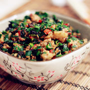 韭菜、猪肉碎、豆鼓、大蒜、红辣椒、生抽、料酒、鸡精。