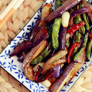 茄子、豆角、姜、蒜、干红辣椒、生抽、蚝油。