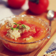 猪肉糜、鸡蛋、葱花、淀粉、清水、盐、鸡精、番茄、盐、鸡精。