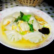 鸡蛋、油菜、馄饨、胡萝卜、木耳、水、生抽、葱、黑胡椒、盐、香油。