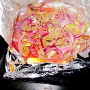 牛肉、洋葱、葱、盐、油、花椒、孜然粉、生抽、料酒、姜。