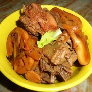 鸭肉、莲藕、油、盐、料酒、酱油、鸡精、姜。