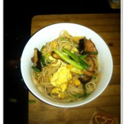 粉干、鸡蛋、虾皮、韭菜、干香菇、香肠、葱花、蚝油、生抽、老酒、盐、油。