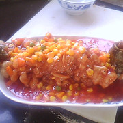 鱼、番茄土司、玉米粒、青豆、葱、姜、蒜。
