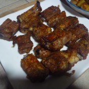 肋排、土豆、大蒜、小葱葱花、盐、味精、蚝油、李锦记蒸鱼鼓油、料酒、孜然粒、孜然粉、干辣椒粉、椒盐。