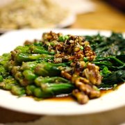 菠菜、核桃、姜、蒜、香葱、熟白芝麻、恒顺香醋、锦珍生抽、小磨香油、橄榄油、花椒油、白砂糖、黑胡椒粉。