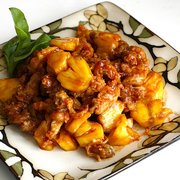 米饭、土豆、香菇、泡菜、黄瓜、洋葱、甜豌豆、食用油、盐、糖、黑胡椒粉。