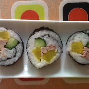 米饭、萝卜、黄瓜、金枪鱼、肉松、海苔、盐、糖、寿司醋。