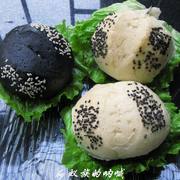 高筋面粉、猪肉末、牛肉末、冰水、快速酵母、有盐黄油、竹炭粉、熟黑芝麻、熟白芝麻。