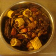 猪排骨、胡萝卜、土豆、玉米、豆角、南瓜、老抽、盐、糖、花椒、大料、桂皮、葱、姜、蒜。