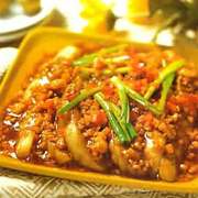 大茄子、青椒、红椒、猪肉、葱、姜、蒜。