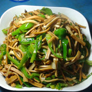 青椒、豆干、姜、蒜、葱、料酒、生粉、味精、白糖。