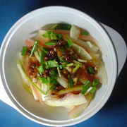 瘦肉、番禺、姜、葱、料酒、白糖、味精、胡椒、花椒油。