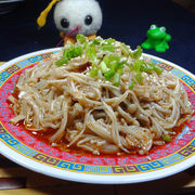金针菇、姜、葱、蒜、酱油、白糖、味精、辣椒油、芝麻油、花椒油、醋、熟芝麻。