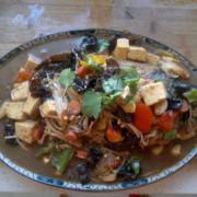 蟹味菇、黄瓜、木耳、腐竹、豆条、排骨汤料、盐、香油。