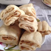 高筋粉、酵母、温水、高筋粉、蜂蜜、黄油、鸡蛋。