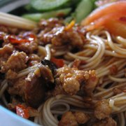 肉末、黄豆酱、豆瓣酱、面条、葱、蒜、姜、西红柿、黄瓜。