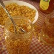 黄豆、熟核桃仁、苹果、即食燕麦片、葡萄干、白糖。