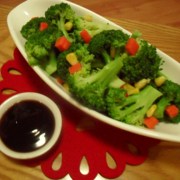 西兰花、胡萝卜、甜玉米粒、李锦记蚝油。