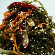 干海带丝、胡萝卜、紫皮洋葱、干辣椒、盐、麻油、蒜、花椒、芝麻。