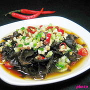 干黑木耳、小葱、姜、蒜、花椒、小米椒、味极鲜酱油、醋、糖、盐、鸡精。