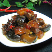五花肉、香菇、葱、姜、蒜、干花椒、小米椒、八角、桂皮、香叶、冰糖、砂糖、味极鲜酱油、老抽、料酒、醋、鸡精。