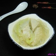 白菜、冻豆腐、粉丝、葱、姜、鸡精、盐。