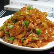 猪肉、粉丝、青椒、葱、姜、蒜、郫县豆瓣、胡椒粉、糖、鸡精、盐。