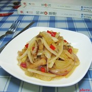瘦猪肉、洋葱、姜、蒜、小米椒、料酒、淀粉、白胡椒粉、味极鲜酱油、盐、食用油、鸡精。