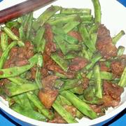 猪肉、四季豆、生抽、盐、生粉、蒜末葱末。