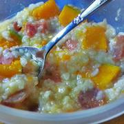 火腿肠、猪肉、小白菜、土豆、杏鲍菇、生抽、盐、油、海底捞麻辣香锅酱料、生粉。