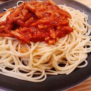 意大利面、火腿、西红柿、番茄酱、橄榄油、大蒜、白糖、米醋、盐、鸡精。