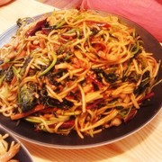 刀切面、猪梅花肉、香菜、干红辣椒丝、食用油、盐、鸡精、酱油、花椒面、淀粉。