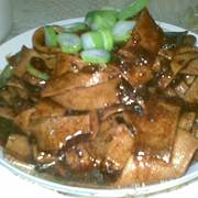 豆腐皮、葱、豆瓣酱、糖、盐、花生油。