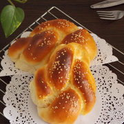 高筋面粉、牛奶、糖、奶粉、黄油、酵母、盐、肉松、沙拉酱、芝麻、鸡蛋液。