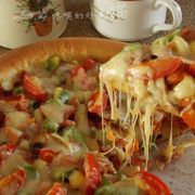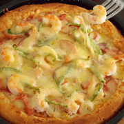 高筋面粉、牛奶、糖、奶粉、黄油、酵母、盐、培根、火腿、蟹肉棒、虾、菠萝、青椒、洋葱、西红柿、大蒜、马苏里拉奶酪。