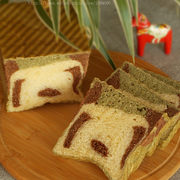 高筋面粉、糖、盐、酵母、全蛋液、牛奶、奶粉、黄油、抹茶粉、可可粉。