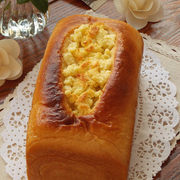 高筋面粉、低筋面粉、盐、酵母、白糖、清水、黄油、培根。