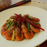北极虾、香葱、姜、干红椒、盐、料酒。