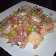 虾、石榴、什锦杂菜、鸡蛋清、玉米淀粉、料酒、胡椒粉、盐、大蒜。