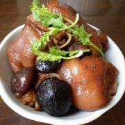 猪脚、香菇、鱿鱼干丝、八角、桂皮、酱油、春生堂酒。