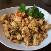 豆腐、肉丝、虾仁、大葱、盐、白酒、花雕酒、红椒、麻婆豆腐调味料。